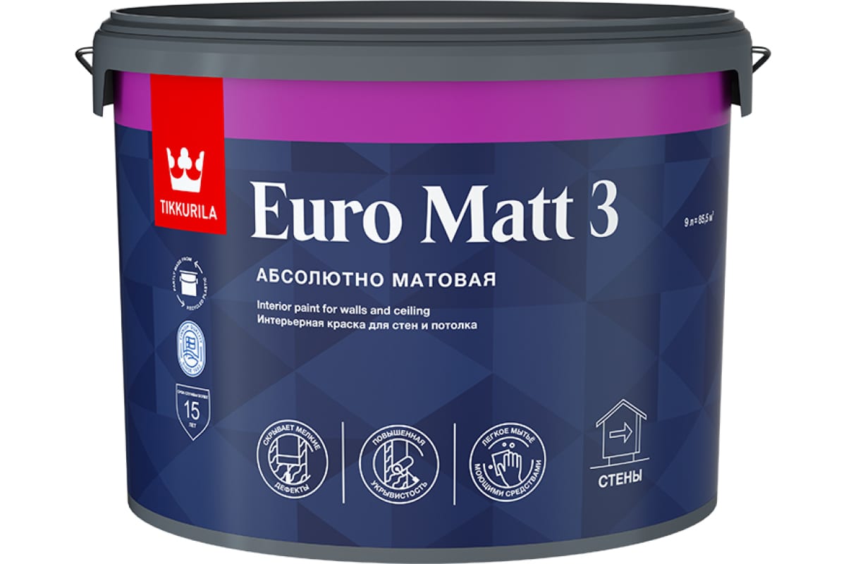 Краска интерьерная Tikkurila EURO MATT 3 глубокоматовая, база A, 9л