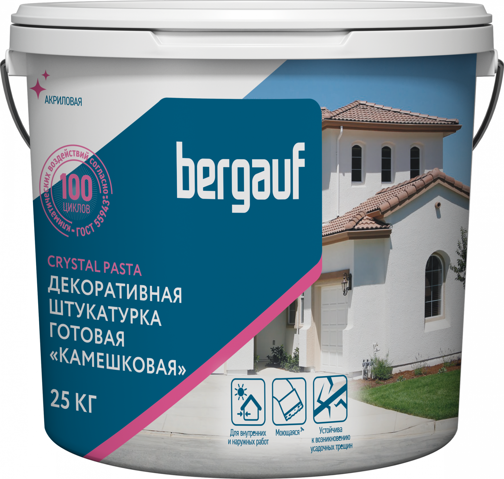 Краска фасадная силикатно-силиконовая BERGAUF Crystal Pasta, 2,0мм U, 25кг (24шт/пал)