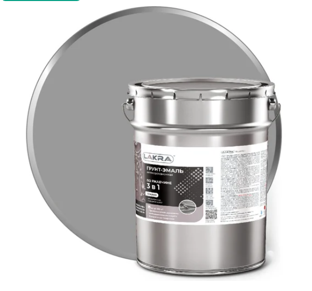 Грунт-эмаль 3 в 1 алкидная Лакра глянцевая, серая, 15кг