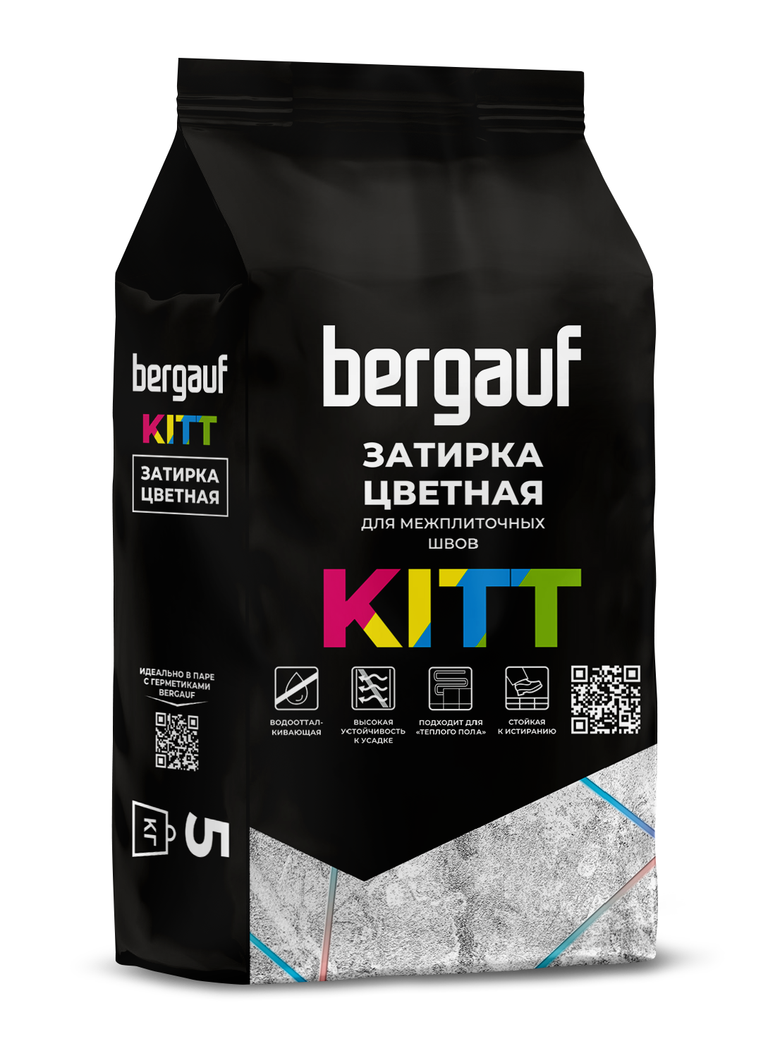Затирка для швов цементная BERGAUF Kitt, серая, 1-5мм, 5кг